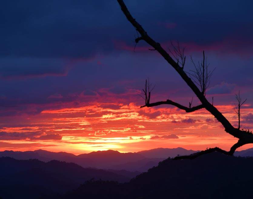 ไฮไลท์ : พระอาทิตย์ขึ้นท่ามกลางภูเขาสลับซับซ้อน บรรยากาศเงียบสงบ