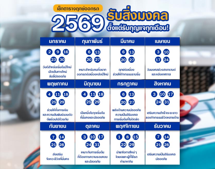 เช็กตารางฤกษ์ออกรถ 2569 รับสิ่งมงคลตั้งแต่รับกุญแจทุกเดือน!