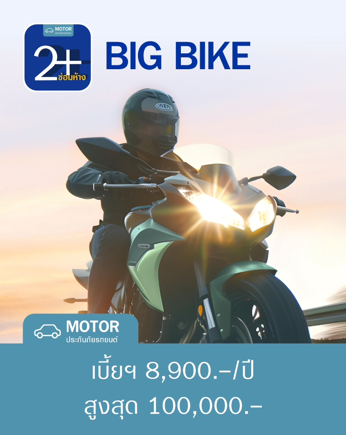- Bigbike 2+ ซ่อมห้าง: เหมาะสำหรับผู้ที่รักรถ Bigbike, รถที่ยังมีอายุไม่มาก (มักจะ 2-5 ปี) และต้องการความคุ้มครองที่ครอบคลุมทั้งรถหาย ไฟไหม้ และการซ่อมด้วยอะไหล่แท้ที่ศูนย์บริการมาตรฐาน